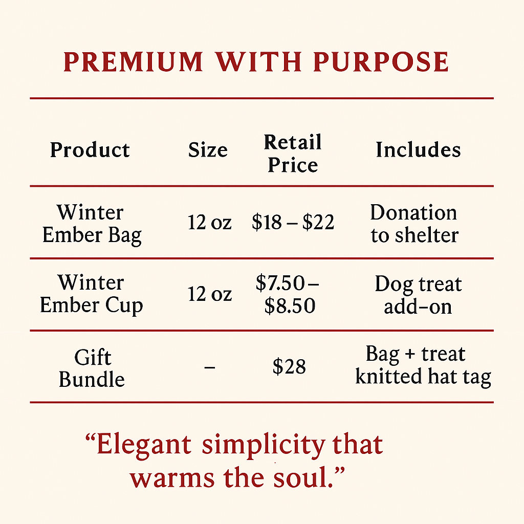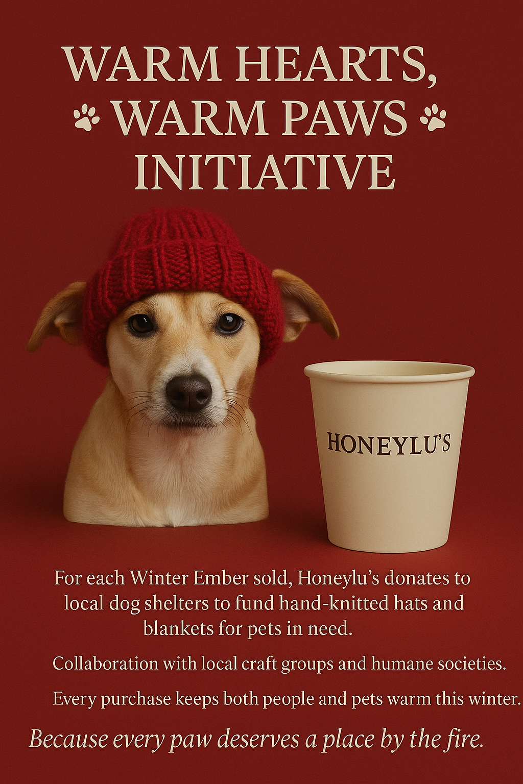 For every Winter Ember product sold, a portion is donated to local shelters to provide knitted hats and blankets for pets in need.